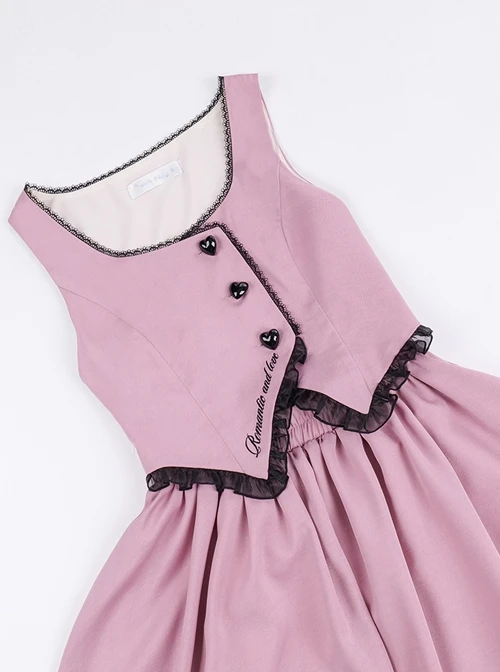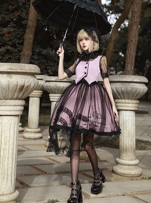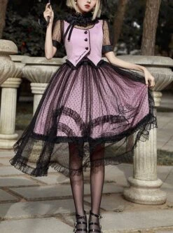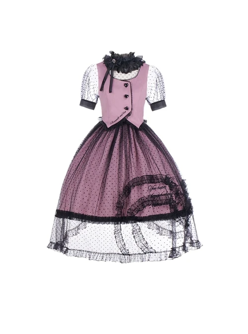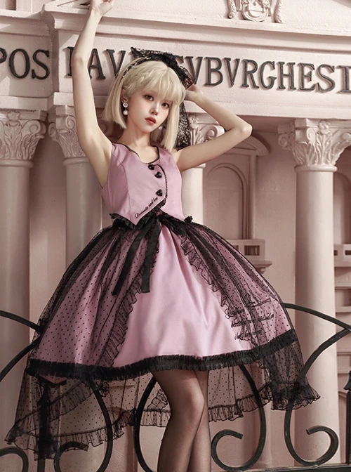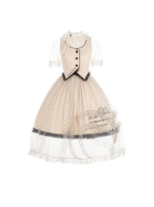 False two-piece design, heart values, polka dot top and cover skirt, stitching embroidery hem, retro elegance.