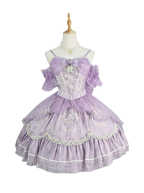 Include: Jsk*1, Back Bownot*1, Detachable Flower Bownot, Flowers*4, Necklace*1