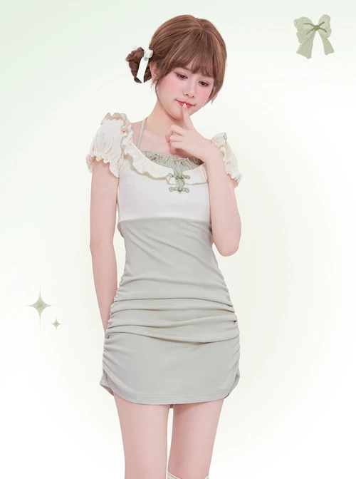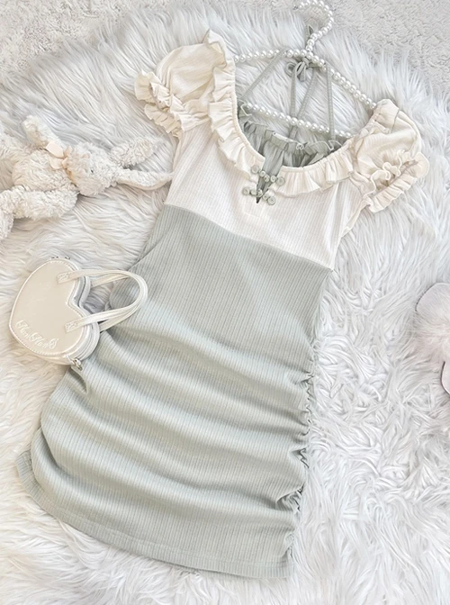 Knitted fabric, breathable and comfortable, with great elasticity, an improved version of the new Chinese style dress, with buckles on the chest, very Chinese charm, slim fit waist butterfly strap design, full of girlishness.