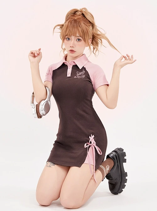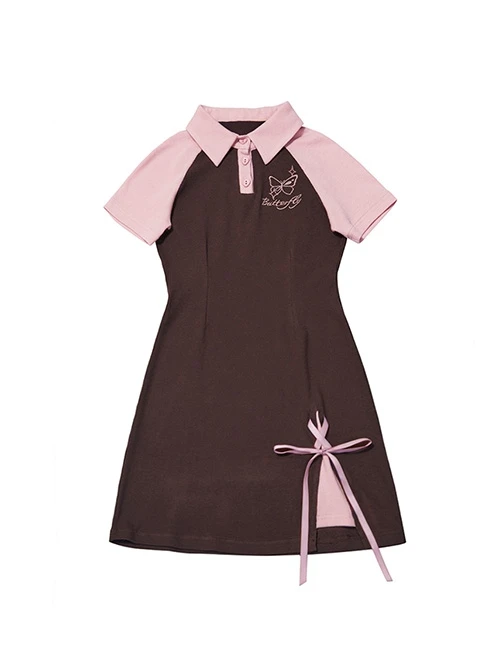 Slim fit daily dress, raglan sleeve stitching design, butterfly embroidery on the chest, small slit at the hem, exquisite and special.