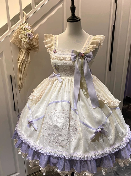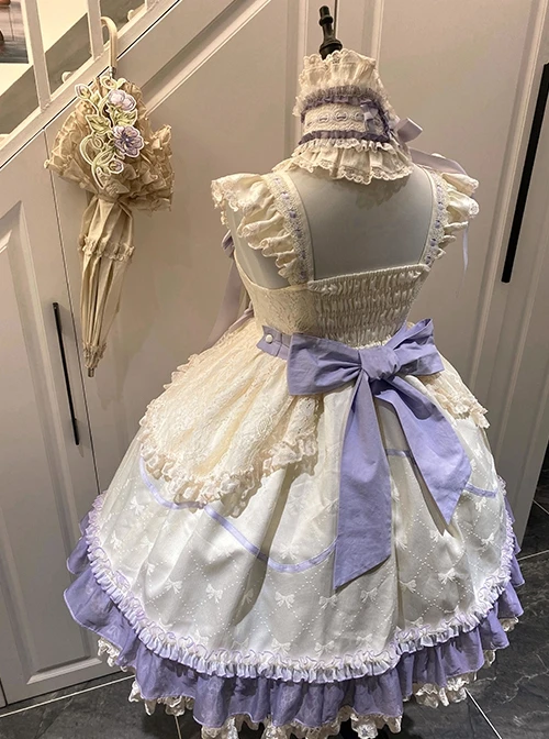 There are pockets on the side of the skirt, decorated with bowknots, detachable brooches, a large skirt with lace ruffles, sweet and lovely sleeveless dress