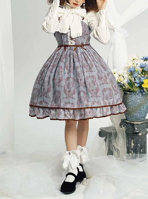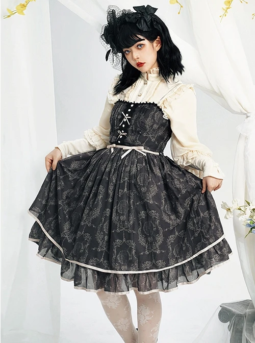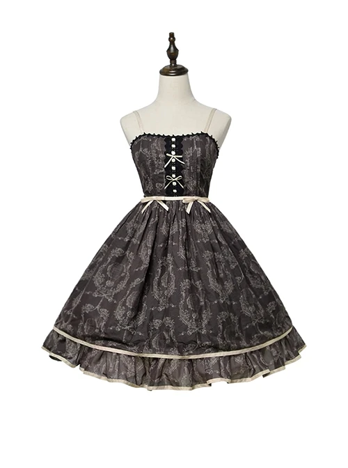 Perfect for everyday wear, this dress is the basis of classic elegance. The dress has cute little lace at the neckline, and the shoulder straps are thinner and can be adjusted in length. The dress is decorated with lace on the chest, with small values and ribbon bows in contrasting colors. The belt also uses the same style of ribbon bows, which is very elegant. The hem of the dress is made into beautiful flounces, which adds to the lovely feeling.