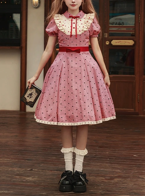 The double-layer wooden ears are full of playfulness, and the bow decoration adds a sense of sweetness. The love plaid decoration, exquisite embroidery lace, and the back zipper are easy to put on and take off, showing the image of a quirky American sweetheart
