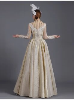 Light Golden High Waist Embroidery Long Sleeve Big Hem Dance Chorus Performance Prom Lolita Dress