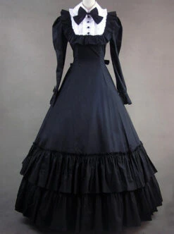 Retro Court Blue-white Temperament Long Lace Bow Calm Elegant Lolita Prom Long Sleeve Dress