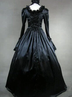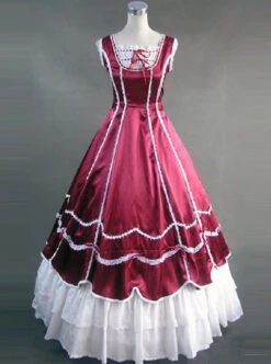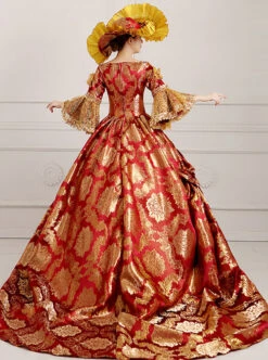 Red Long Retro Court Style White Stand Collar Long Sleeve Lace Drama Performance Prom Lolita Dress