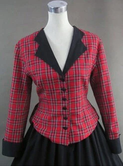 Renaissance Student Style Red Plaid Top And Skirt Two-piece Set Lolita Prom Dress