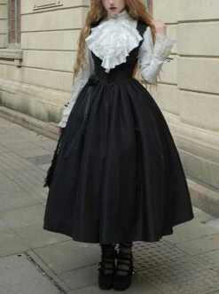 The main color of the dress is deep black. The design pays attention to details and adopts a close-fitting design, which provides you with perfect chest support and creates charming curves. The skirt of the dress is wide and has an elegant hem effect, allowing you to sway gently while walking, showing your noble and elegant temperament. The overall design of the skirt is simple and elegant, adding a dignified and classic atmosphere to the overall look.