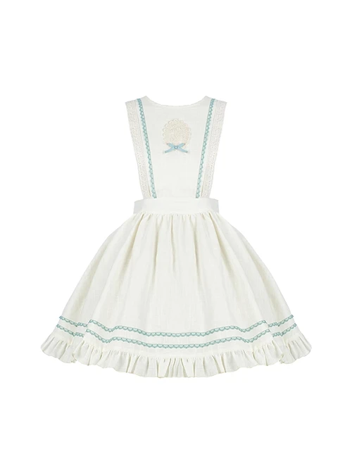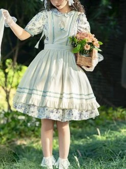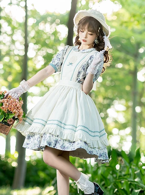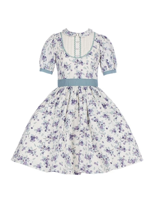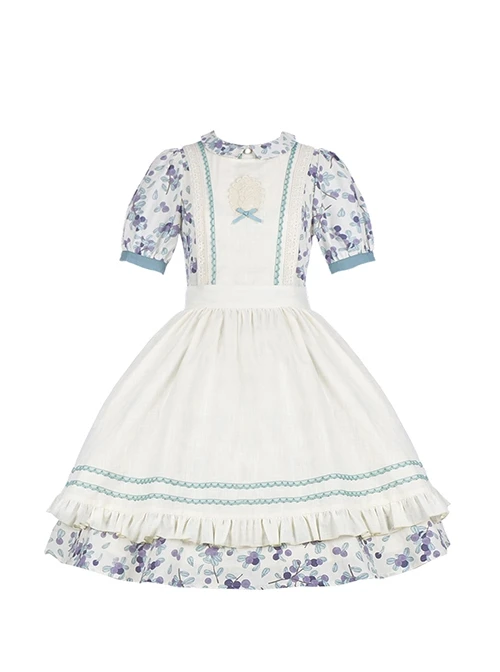 Cute puff sleeve blueberry print short-sleeved dress, detachable apron, a variety of matching.