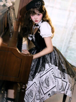 Black White Alice Series JSK Retro Splicing Punk Lolita Sling Dress