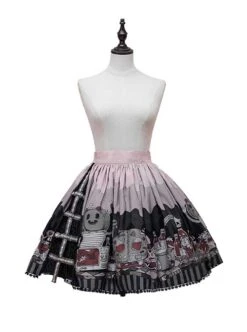 Black White Alice Series OP Retro Splicing Irregular Hem Punk Lolita Short Sleeve Dress