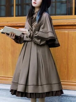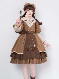 Kitten Detective Series Brown Open Front Retro School Lolita Sleeveless Dress