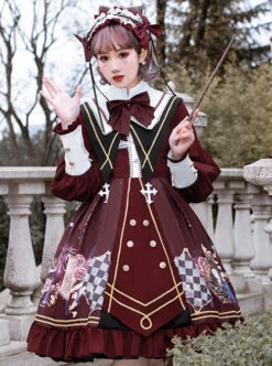 Immortal Bottle Series OP Retro School Lolita Long Sleeve Dress