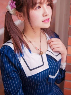 College Uniform Style Sailor Collar Navy Blue Stripes School Lolita Long Sleeve Dress