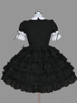 Black And White Short Sleeves Bow Cotton Gothic Lolita Dress