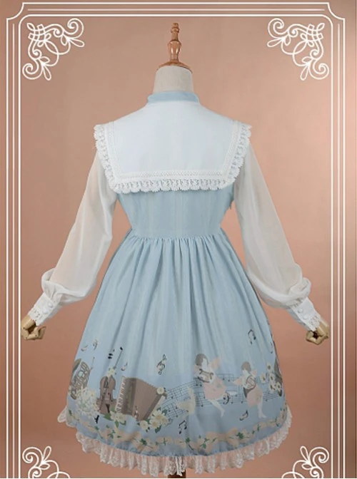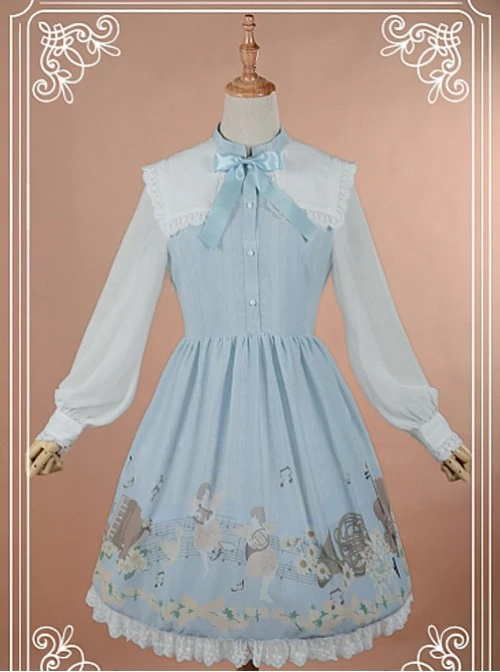 Features:Square collar with bowknot trimming, printed A-line dress in chiffon.(The bowknot can be detachable.)